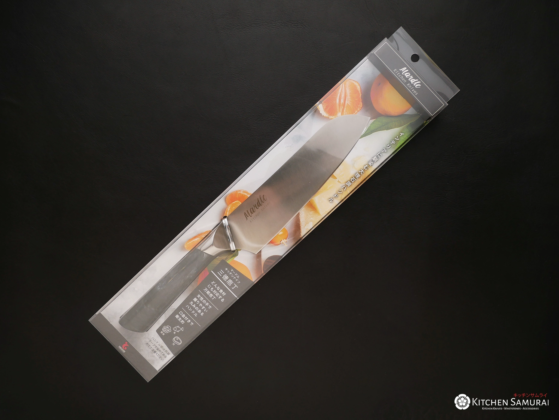 Santoku Knife (三徳包丁 – pronounced: Santoku Bōchō) literally translated from Japanese means ‘Three Virtues’. Three Virtues refers to the three methods of using a knife namely slicing, dicing and chopping or the three types of fresh produce that is meat, fish and vegetables.