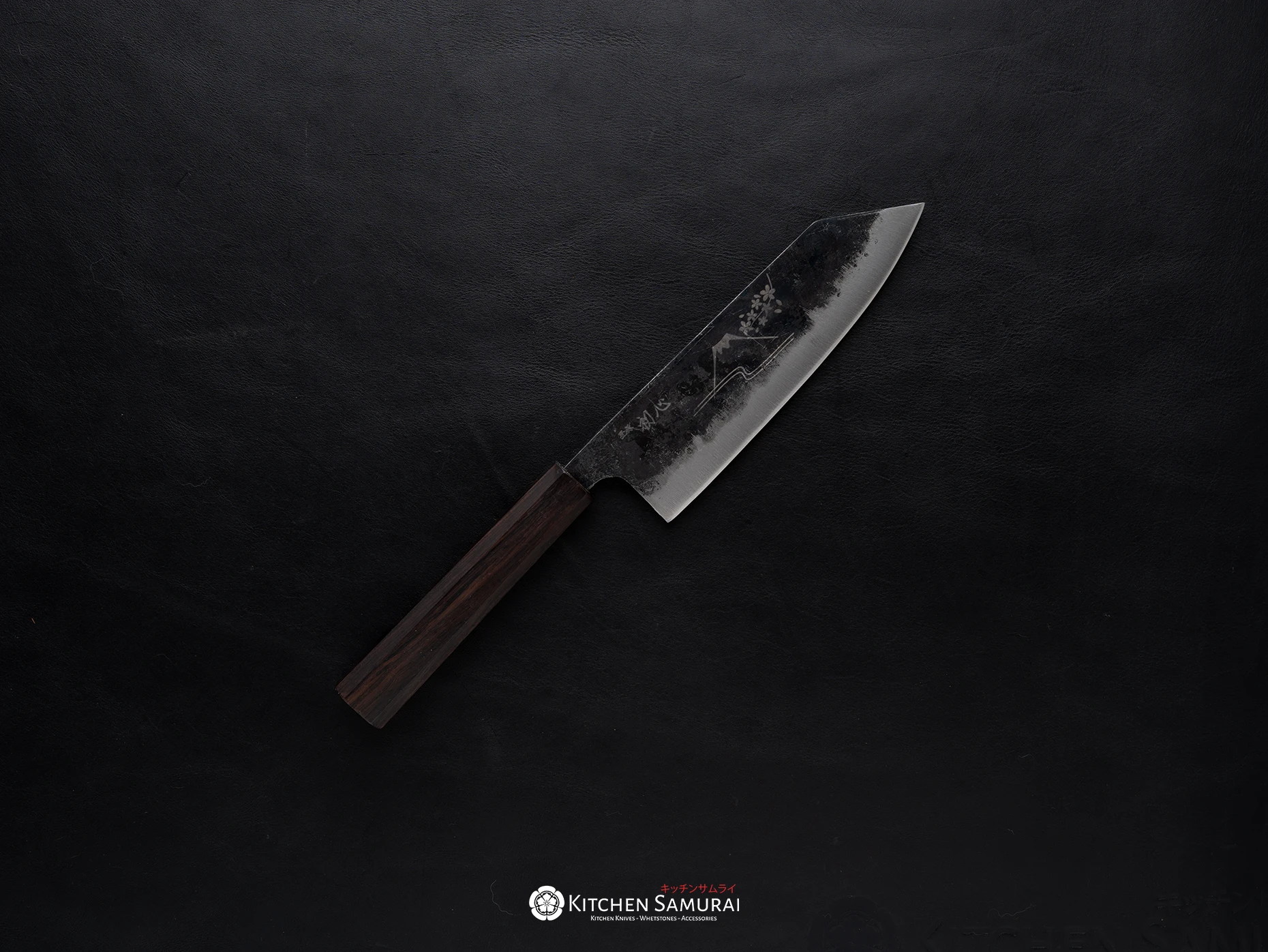 The Kurogane range is forged in the Tosa region and reflects a true workhorse approach to Japanese knife making. Kurogane (黒鉄) translates to “black iron”, referring to both the kurouchi forge finish and the tough, utilitarian nature of these blades. Visible forge marks and a raw finish are intentional, highlighting the knife’s handmade origin.