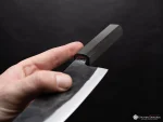 As with all carbon steel Japanese knives, proper care is essential. Always hand-wash and dry the knife immediately after use and avoid prolonged exposure to moisture. Due to the harder nature of carbon steel, avoid cutting bones, frozen foods, or very hard ingredients, as these can cause chipping. With correct use, regular sharpening, and good maintenance, this knife will deliver exceptional performance for many years.