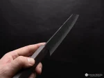 The length of the Bunka is generally shorter than traditional Western chef’s knives. The shorter, compacted length and thinness of the blade makes it lighter and less strenuous to handle for long periods of time. The tall, flat profile with the reverse tanto is what characteristically defines the blade from other shapes.