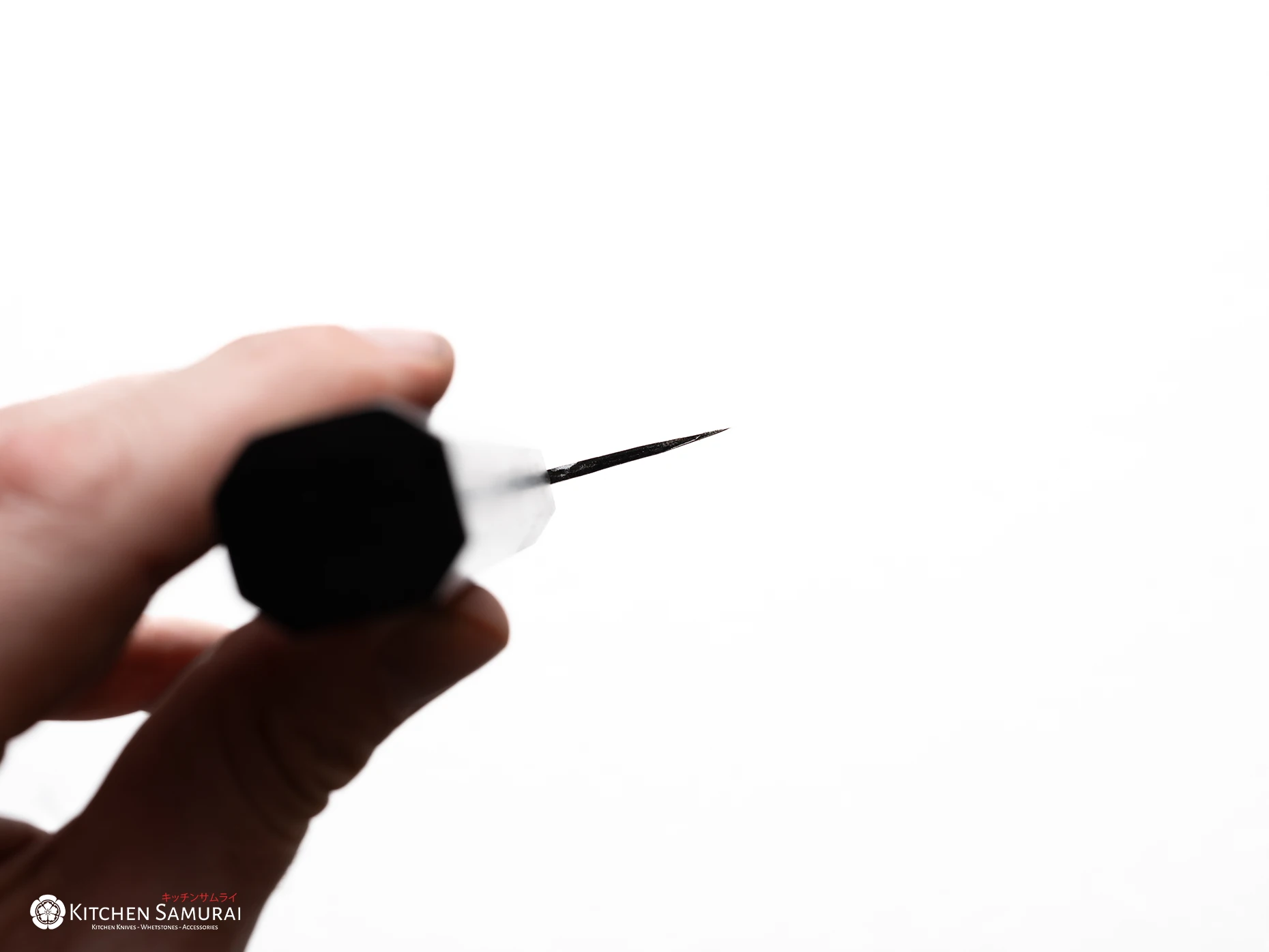 This knife features a relatively thick grind, making it more robust than thinner, laser-style Japanese knives. The added thickness provides durability and confidence during everyday prep while still allowing excellent cutting performance once properly sharpened.