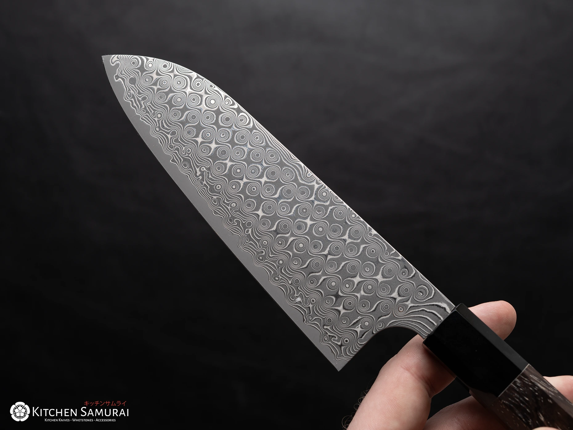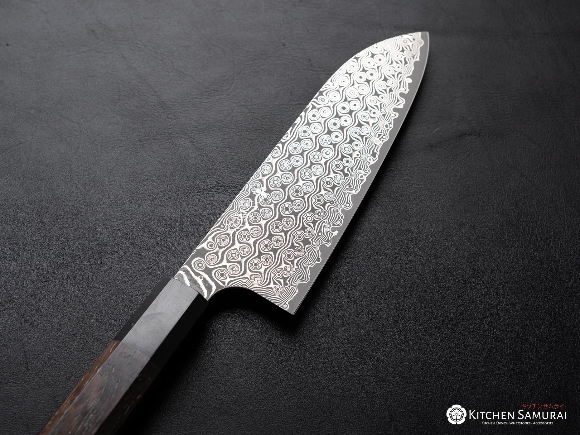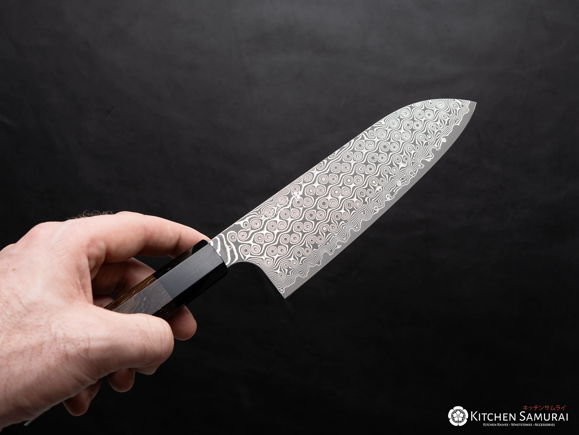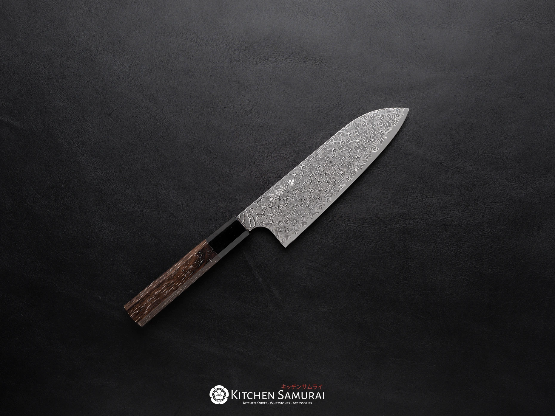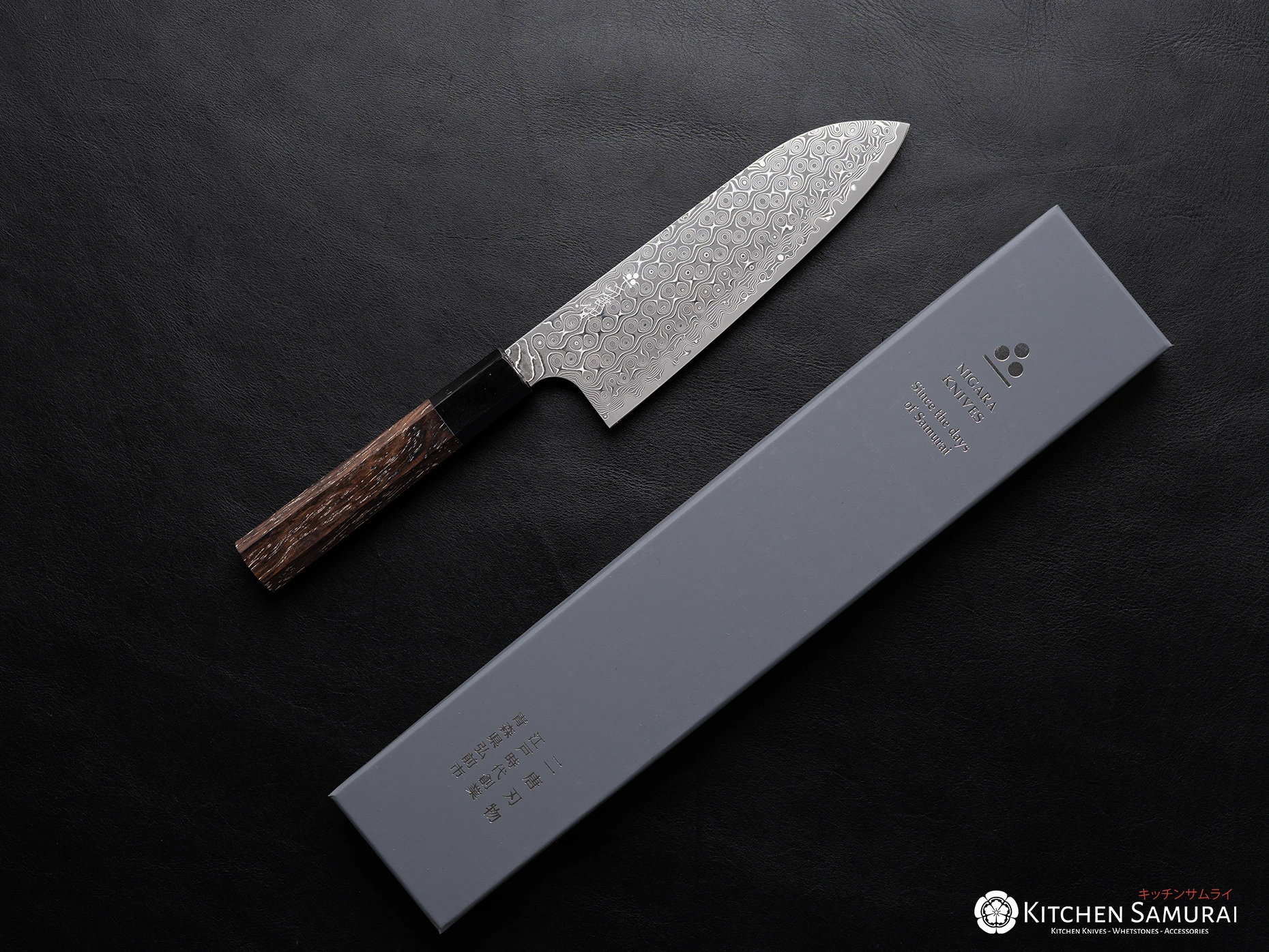 Santoku Knife (三徳包丁 – pronounced: Santoku Bōchō) literally translated from Japanese means ‘Three Virtues’. Three Virtues refers to the three methods of using a knife namely slicing, dicing and chopping or the three types of fresh produce that is meat, fish and vegetables.