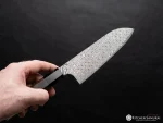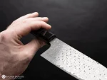 The Santoku’s multi-purpose and versatility nature leads it to be compared with a Western chef’s knife or the Gyuto. As the Three Virtues suggests it’s perfect for chopping, mincing and slicing the three main fresh produces. It excels easily through the fresh produce and creates thin slices of meat, seafood, cheese, fruits, and vegetables. The wide blade is handy for scooping food off the cutting board. The blade profile is well suited for up-and-down motion or using a tap-chop or a push-cut.