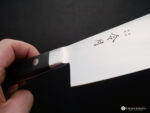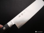 The Nakiri’s broad rectangular blade allows for quick and efficient chopping, dicing and mincing of large vegetables. The height of the blade also allows cutting through harder root vegetables with a straight down chopping motion. The Nakiri may also be turned upside down to use the spine of the blade to scrape ingredients across the chopping board without damaging the blade. The blade profile with its straight, flat edge works best when using an up and down chopping motion.