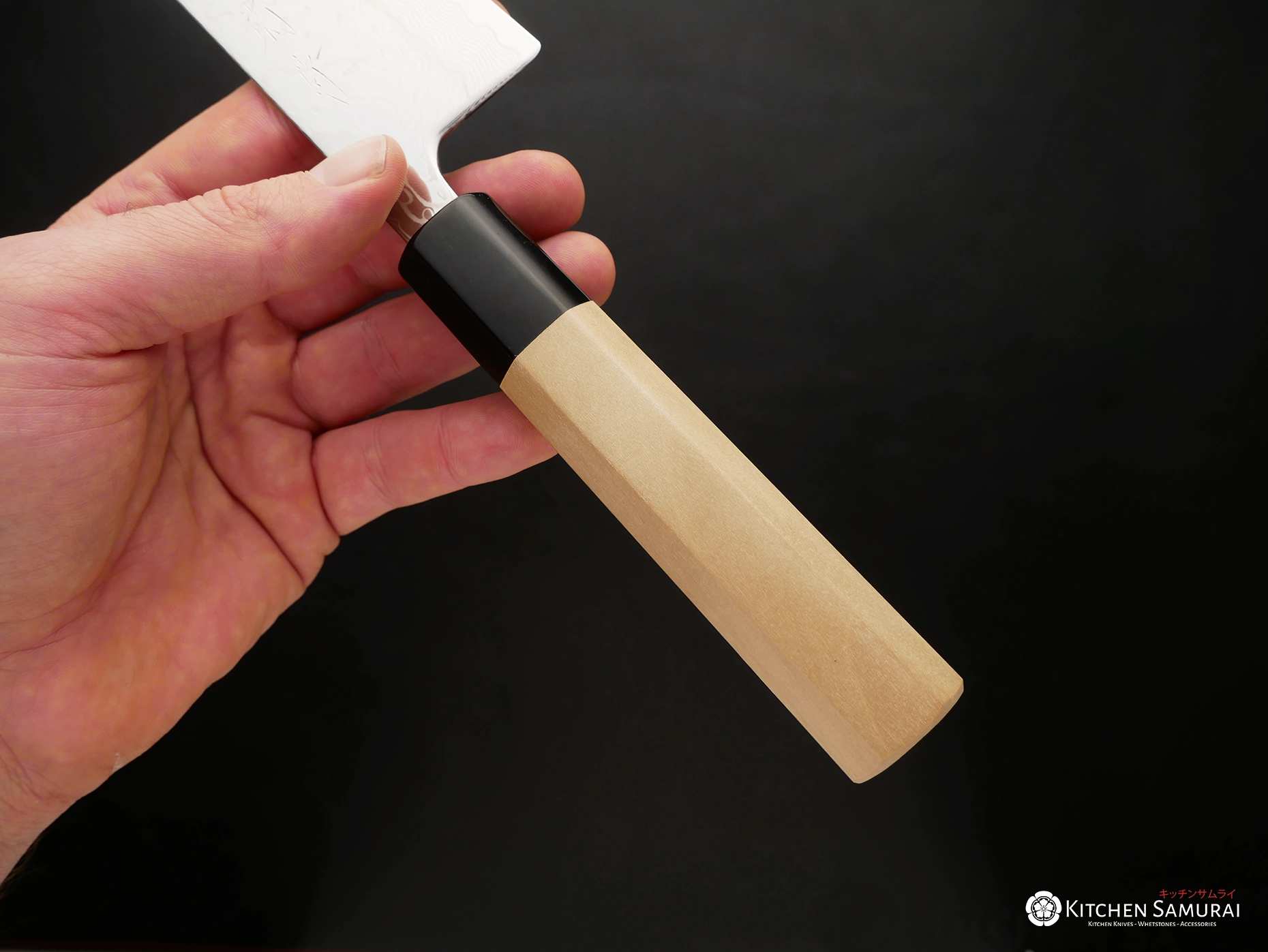 Hitachi originally designed SLD for cutting other steels. It has great edge retention and sharpness. The steel is considered a Semi-Stainless Steel and will eventually develop a nice patina. It’s less reactive than some carbon steels like Shirogami or Aogami. We still recommend wiping the blade during use on highly acidic products.
