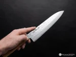 Gyuto (Chef’s) Knife (牛刀包丁 – pronounced: Gyūtō Bōchō) literally translated from Japanese means ‘Cow Blade’. ‘Gyu’ means Cow and ‘to’ means blade. The name stems from its original use to slice and disjoint large cuts of beef. These days the Gyuto is comparable to the Western-styled chef knife and is viewed as an all-rounder in the kitchen.