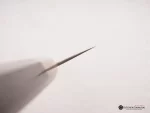 The Gyuto features a longer blade providing versatility for cutting larger produce while the tip of the blade allows it to be nimble enough for precision work. The edge is flat from the heel to the belly with a slightly rounded profile from the belly to the tip. The hard steel used in manufacturing makes the double-bevel edge much sharper than Western chef’s knives and retains the ultra-sharp edge for much longer.