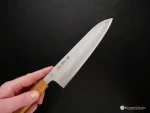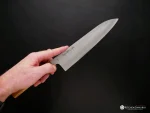 The Gyuto is the ultimate multi-purpose kitchen knife and is perfect for chopping, slicing, mincing and dicing boneless meat, fish, vegetables, fruit and herbs. The blade profile is well suited for tap-chop or thrust-cut. The slight curve from the middle of the blade leading to its pointed edge is used to rock-chop. Its name also suggests that it is perfect for cutting meat and doing light butcher work. It can be used to pull-cut softer meats or to push-cut more muscular cuts of meat.