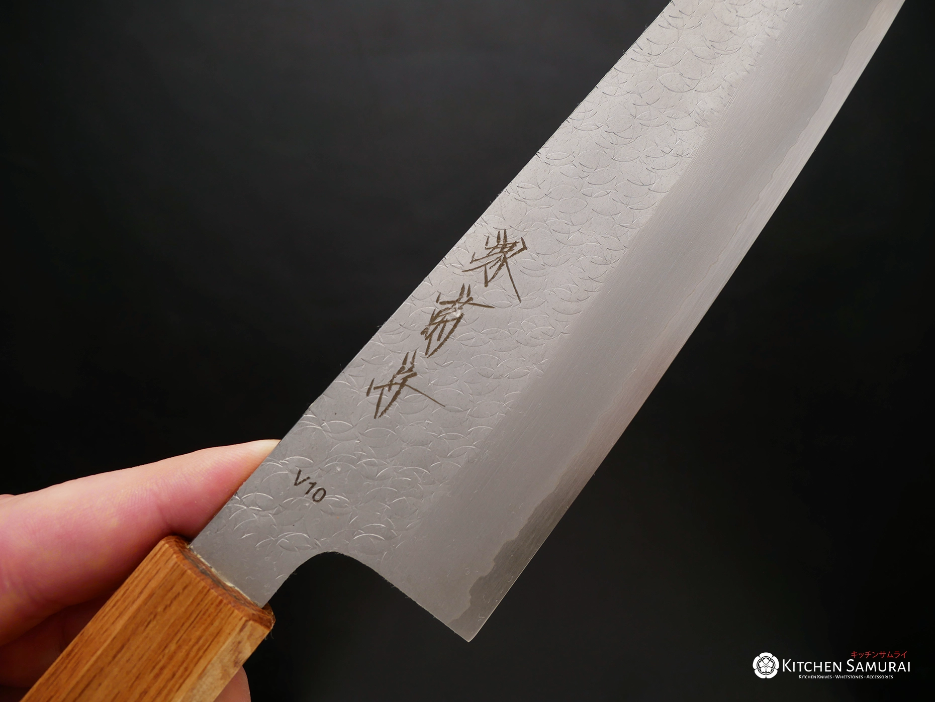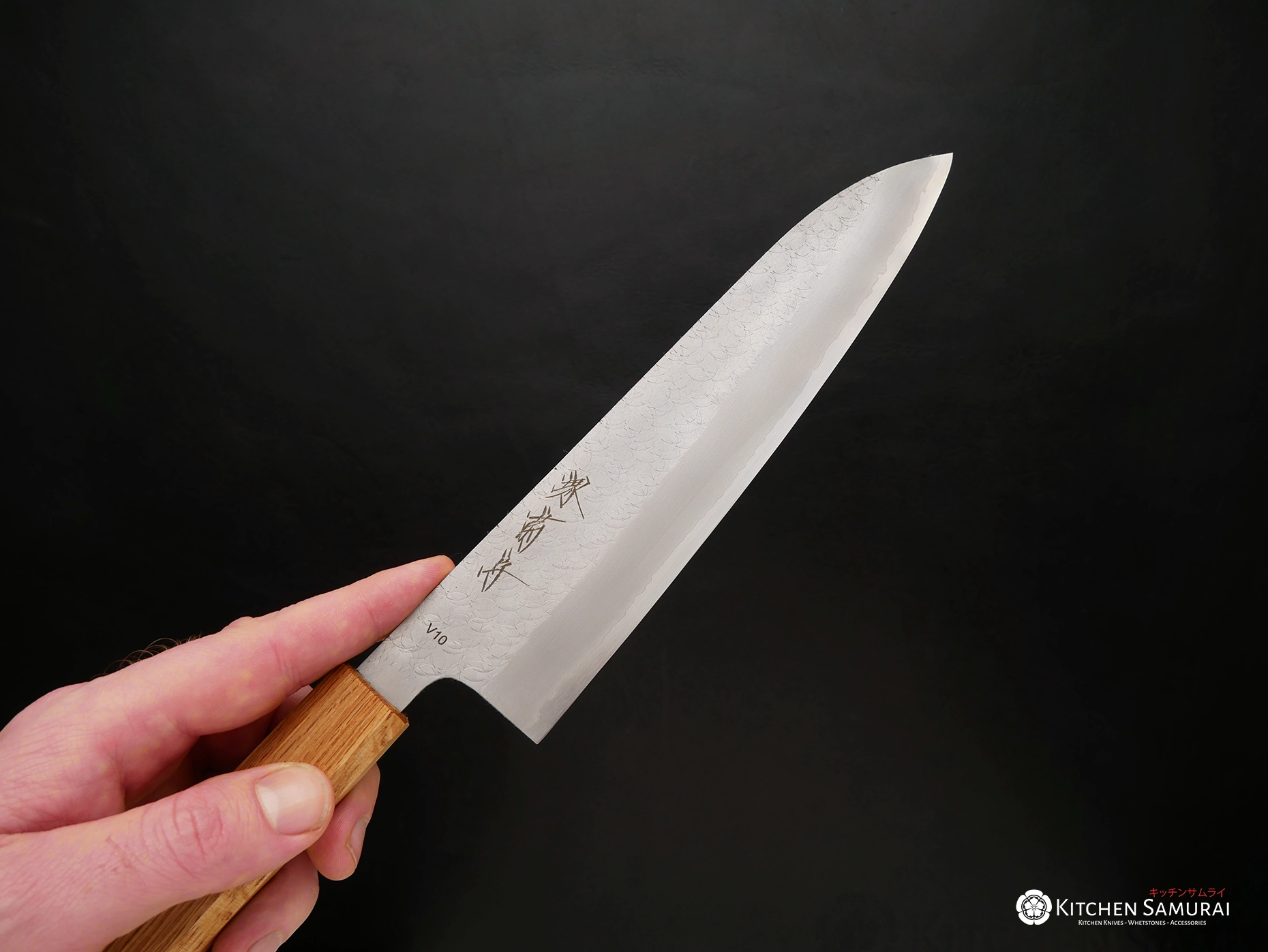 Gyuto (Chef’s) Knife (牛刀包丁 – pronounced: Gyūtō Bōchō) literally translated from Japanese means ‘Cow Blade’. ‘Gyu’ means Cow and ‘to’ means blade. The name stems from its original use to slice and disjoint large cuts of beef. These days the Gyuto is comparable to the Western-styled chef knife and is viewed as an all-rounder in the kitchen.