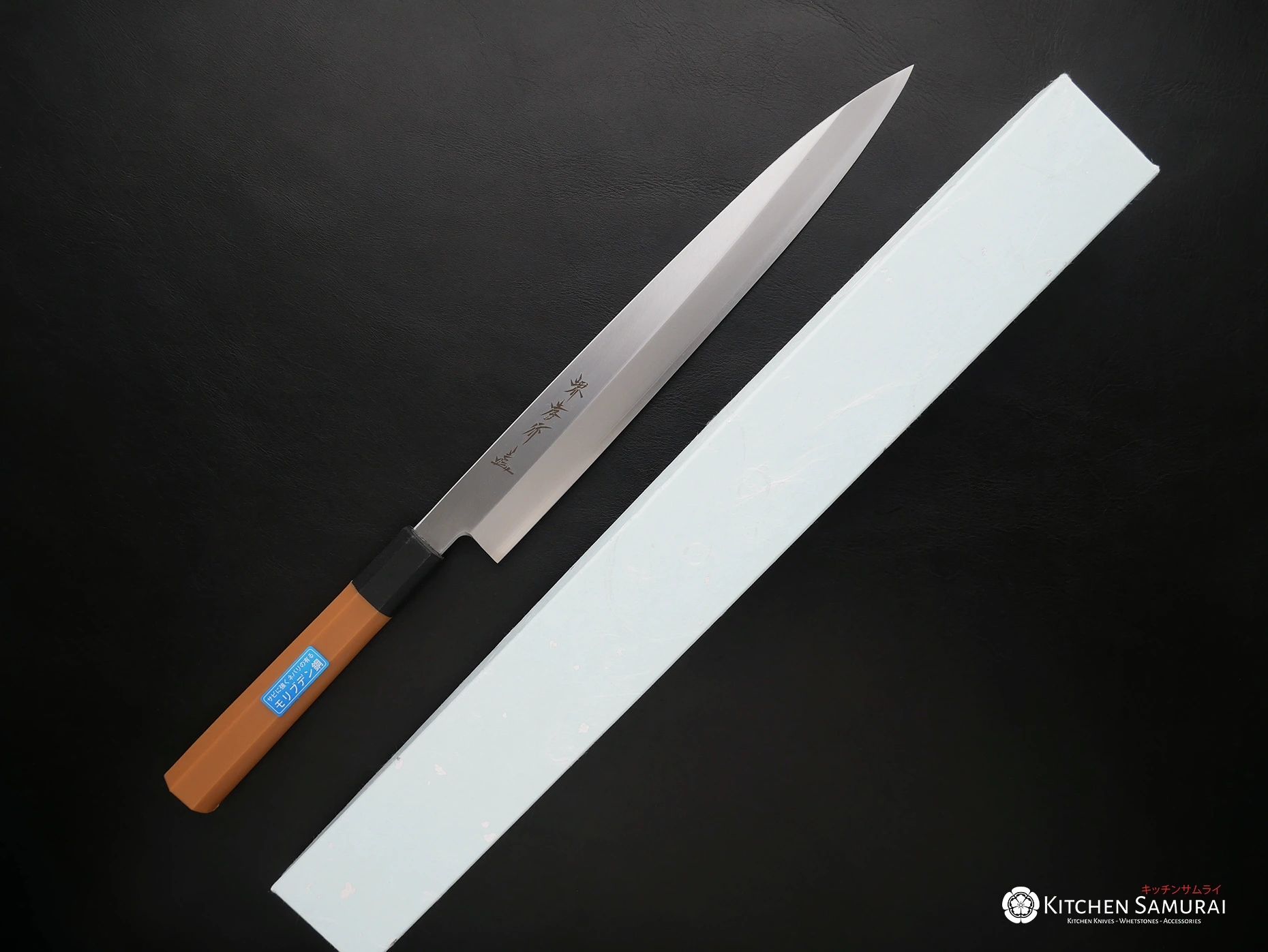Yanagiba Knife (柳刃包丁 – pronounced: Yanagi-ba Bōchō) literally translated from Japanese means ‘willow leaf blade’. The name refers to its blade shape being long, slender in a leaf shape. An alternative name Shobu refers to the Iris shaped leaf in the Kansai region.