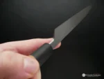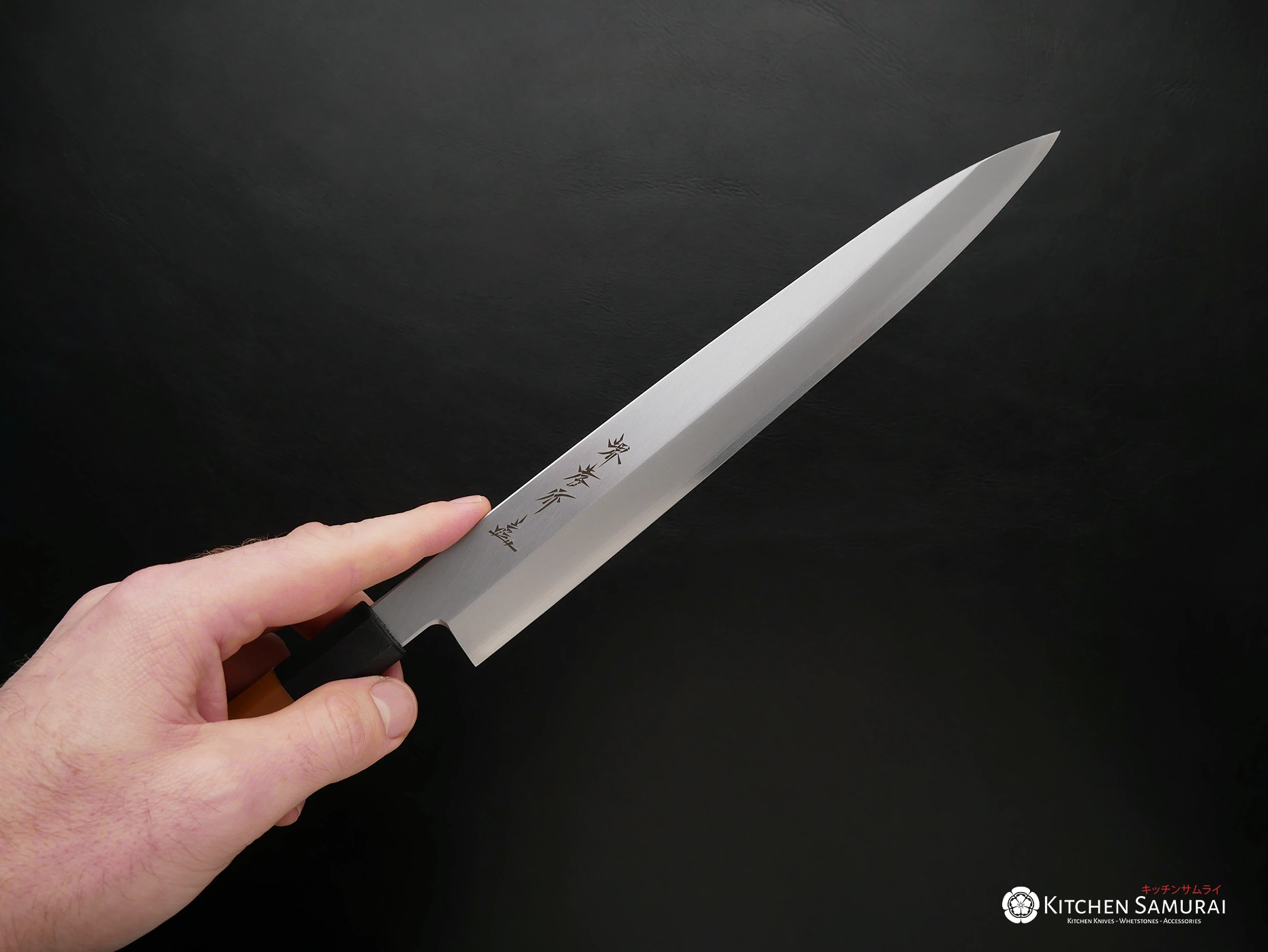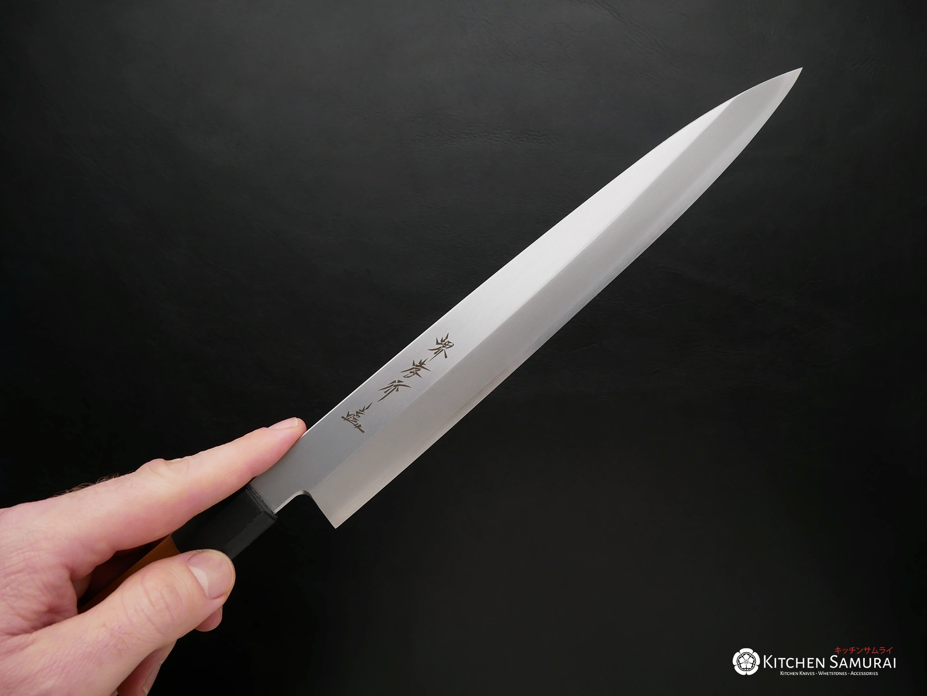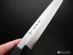 The Yanagiba’s long, thin and narrow blade allows the user to cut through a fish fillet using just one single long stroke instead of back and forth “sawing”. The weight of the blade is enough to ensure minimum pressure while slicing fresh fish fillets. The Yanagiba has a single-bevel edge allowing it to be extremely sharp. Traditional Japanese knives characteristically have single-bevel edges. Most single-bevel knives are right-handed so if you are left-handed make sure to request.