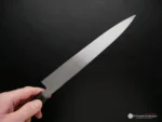 The Yanagiba knife is best for slicing raw fish, especially for the preparation of sashimi and nigiri sushi dishes. The thinness and length of the blade profile allow for Japanese pull-cutting techniques. The sharpness of the blade makes it possible to do so in one clean sweep preventing tearing or bruising of the fish. The cut surfaces stay smooth, fresh, shiny and deliver delicate flavours and soft textures.