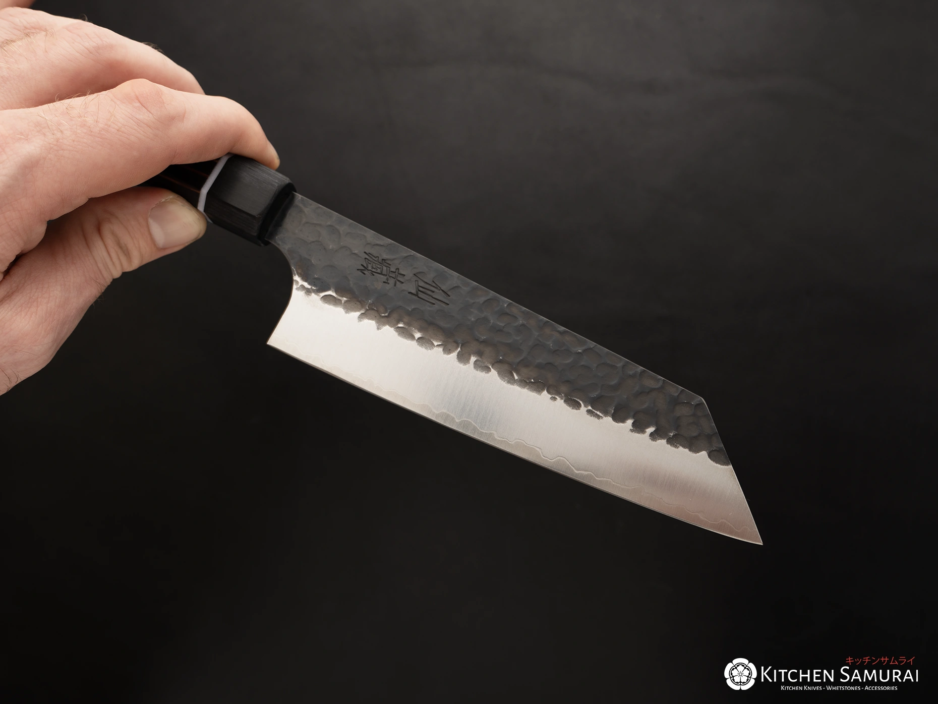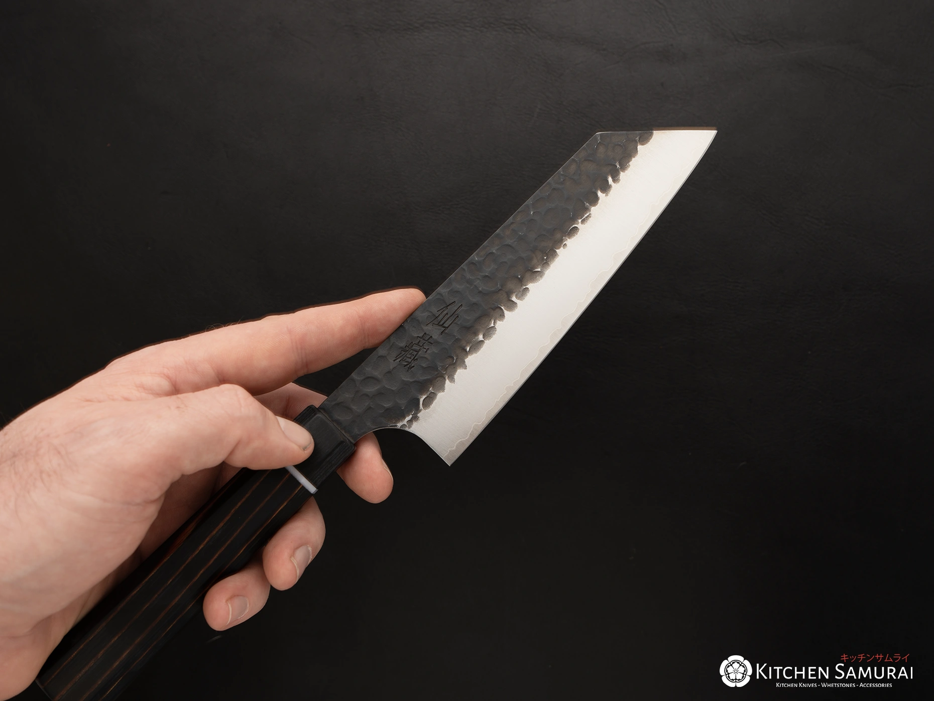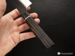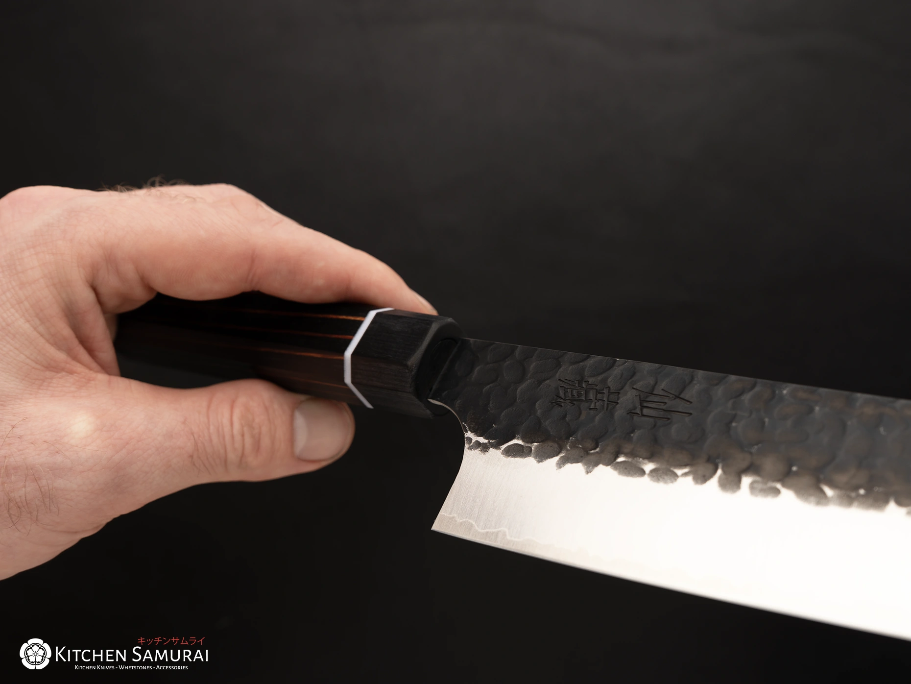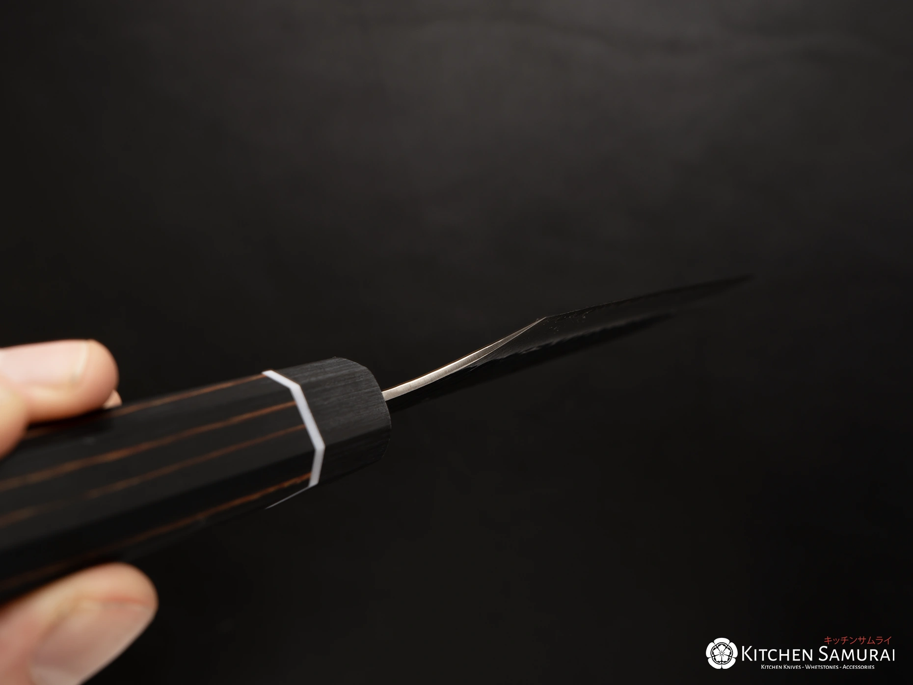 The length of the Bunka is generally shorter than traditional Western chef’s knives. The shorter, compacted length and thinness of the blade makes it lighter and less strenuous to handle for long periods of time. The tall, flat profile with the reverse tanto is what characteristically defines the blade from other shapes.