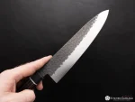 Gyuto (Chef’s) Knife (牛刀包丁 – pronounced: Gyūtō Bōchō) literally translated from Japanese means ‘Cow Blade’. ‘Gyu’ means Cow and ‘to’ means blade. The name stems from its original use to slice and disjoint large cuts of beef. These days the Gyuto is comparable to the Western-styled chef knife and is viewed as an all-rounder in the kitchen.