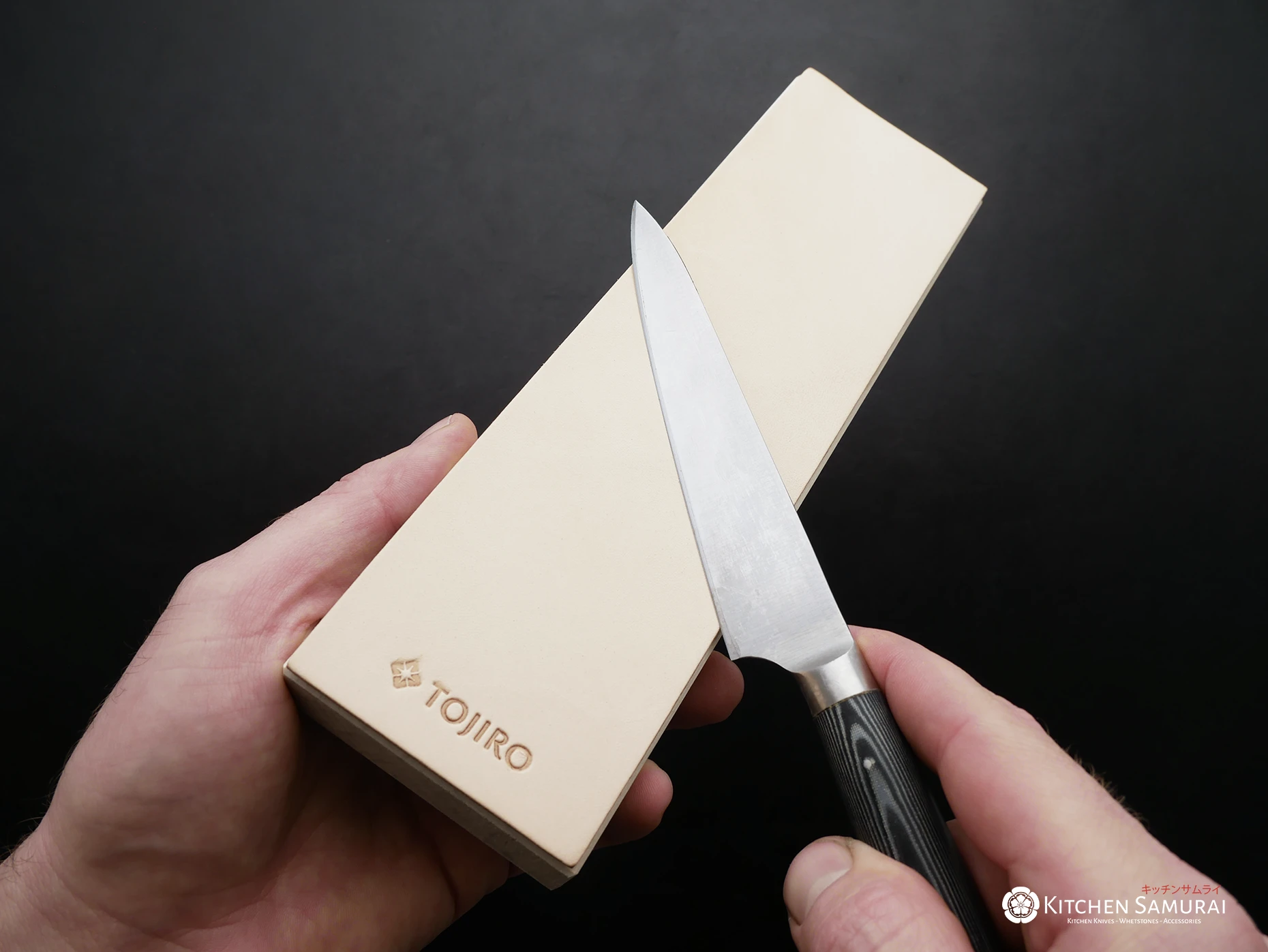 Use the Tojiro natural leather strop to get rid of burrs that cannot be removed by finer whetstones, and finish/polish your edge to an extra sharp and smooth finish!