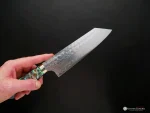 The length of the Bunka is generally shorter than traditional Western chef’s knives. The shorter, compacted length and thinness of the blade makes it lighter and less strenuous to handle for long periods of time. The tall, flat profile with the reverse tanto is what characteristically defines the blade from other shapes.